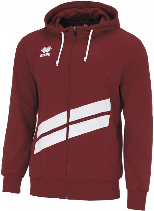 Errea Jill Sweatshirt. A nice polyester hoodie for cold workouts or outside the court. This hoodie is solid color and is broken by two contrasting stripes across the stomach. The Errea logo is located on the right chest. The material is 100% polyester.